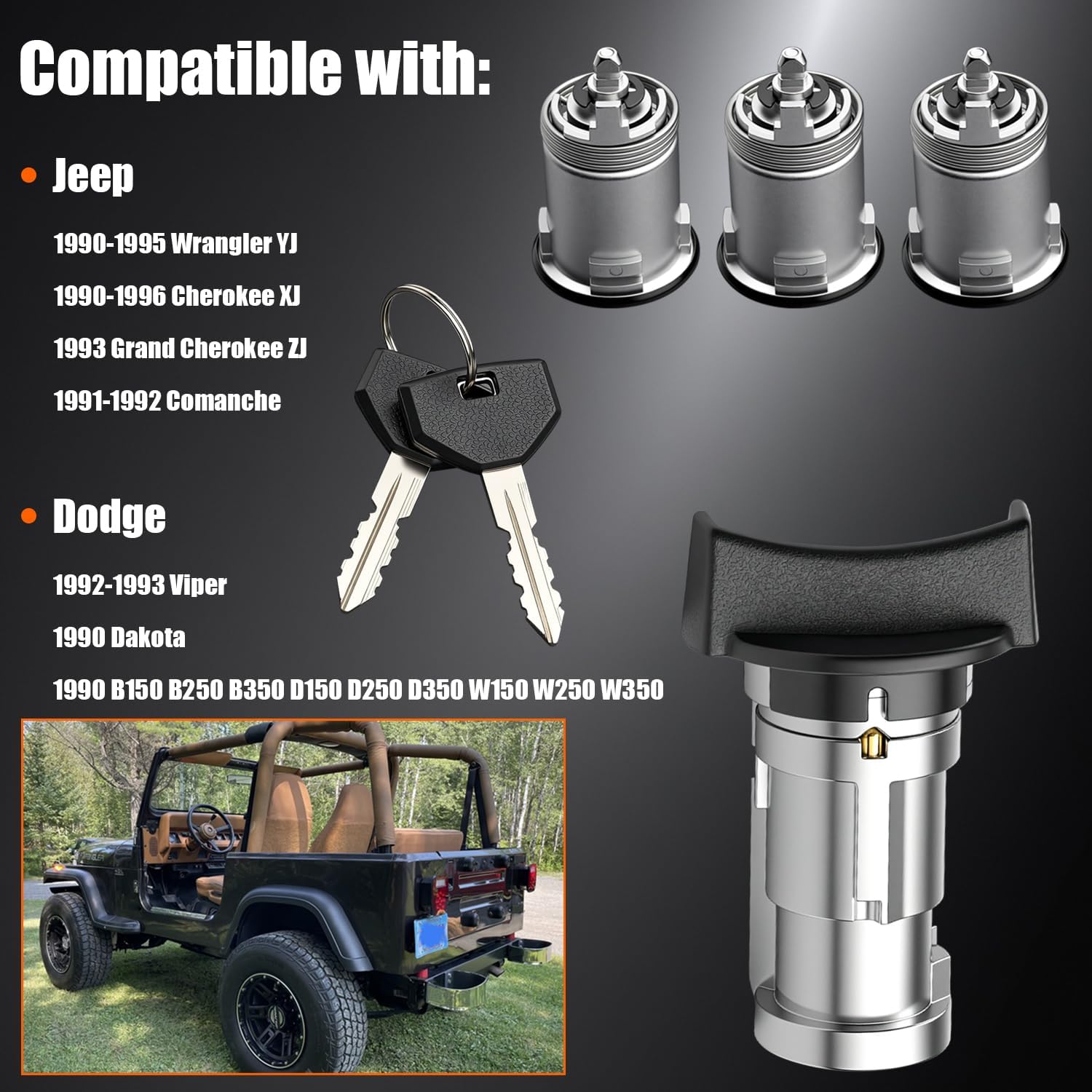 | Included Components | 1 * Ignition Switch, 3 * Door Lock Cylinder, 2 * Matching Key |