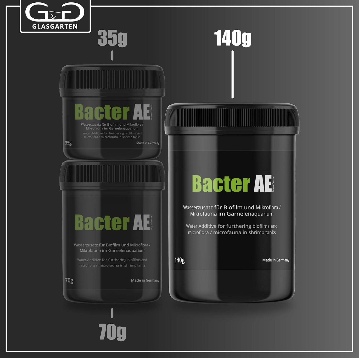Bacter AE Micro Powder adds important microorganisms, amino acids and enzymes to your aquarium. It enhances water quality and improves the development of biofilms, which are essential for shrimp. The biofilms thus created provide them with a valuable staple food rich in beneficial proteins, especially improving the survival rate of young shrimplets. In addition, live probiotic bacteria improve the nutrient uptake of the shrimp and influence their digestive processes in a positive way. The contained bacteria in Bacter AE Micro Powder cultures are activated as soon as they come into contact with water. They remove toxic substances and, together with all the other carefully fine-tuned components, they provide your aquarium with a good microclimate. Dosage (for 120 Liter) lowly stocked: daily 1/2 measuring spoon* normally stocked: daily 1 measuring spoon* heavily stocked: twice a day 1 measuring spoon* We recommend when first using, add only half the dosage during the first week * 1 measuring spoon = about 0.5g Ingredients Amino acids, polysaccarides, xylanase, glucanase, amylase, protease, hemicellulase, Bacillus subtilis, Pediococcus acidilactici (Lactobacillus)