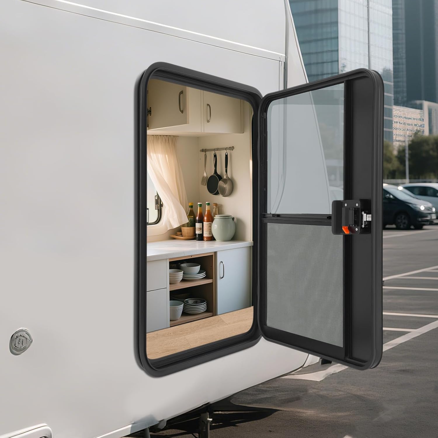 SpecificationsApplicable Models: For Most RVs, Campers, TrailersCondition: NewColor: BlackInstallation Position: Right Passenger Side Way of Use: Direct Replacement Fitment Type: Direct FitMaterial: Aluminum, Aluminum Alloy, Tempered Glass, FiberglassProcess: Spray-coatingInstallation Method: Sandwich InstallationInstallation Hole Size: 711*965mm/28*38inApplicable Vehicle Wall Thickness: 18-20 mm/0.7-0.8inPackage Size: 106.5*81*12cm/41.93*31.89*4.72inGross Weight: 14kg/30.86lbsNet Weight: 13.3kg/29.32lbsKey FeaturesSelected Materials: Made of high-class aluminum, aluminum alloy, tempered glass, and fiberglass, and treated with spray-coating, this product is ventilated, noise-reducing, heat-insulating, waterproof, and heat-preserving, ensuring its excellent durability and longer service life.Safe Design: You can close the doors in outdoor environments to effectively block moisture and dust, maintaining an ideal internal environment. Additionally, it is equipped with a single-point lock and four keys, preventing the loss or theft of items inside the vehicle and significantly enhancing property security.HighlightsBrand New, With Premium QualityExquisite WorkmanshipLong Service LifeStable Performance Strong and DurableEasy to CleanNotes1. We strongly recommend professional installation. 2. Please confirm the model number and size before purchasing.3. Please note that you need to select the drilling method, location, and screws based on the thickness and material of the vehicle body. You also need to provide screws and drill holes for the door stop based on the condition of the vehicle body.4. Please note that the installation screws must be longer than 0.8 inches. Please allow for slight color differences caused by shooting light and errors caused by manual measurement, and make sure you don't mind before ordering.Fits (As a Reference)For Most RVs, Campers, TrailersPackage Included1* RV Entry Door4* KeysOther Installation Accessories
