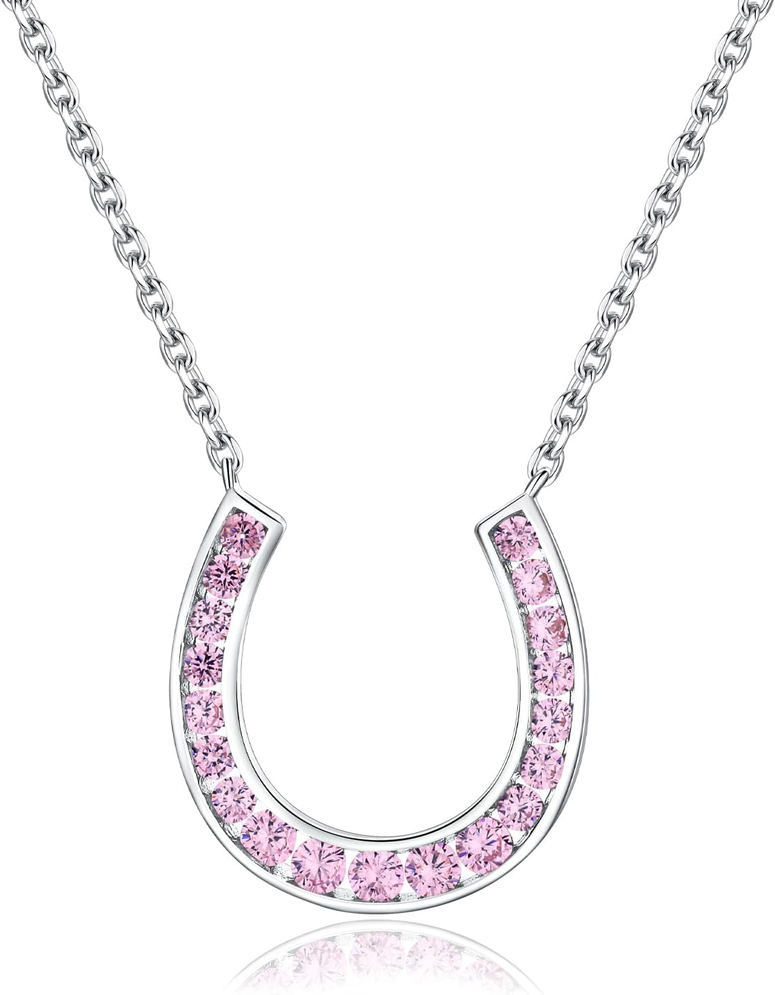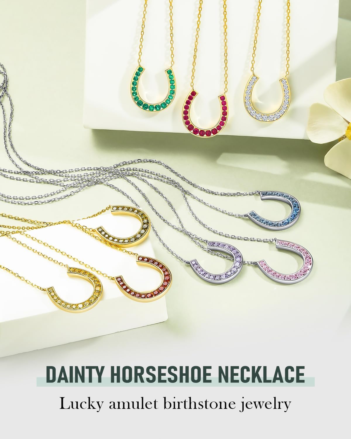 Lucky Horseshoe Necklace for Women, 14K Gold Plated Sterling Silver Stunning U Shape Created Gemstone Pendant Necklaces.