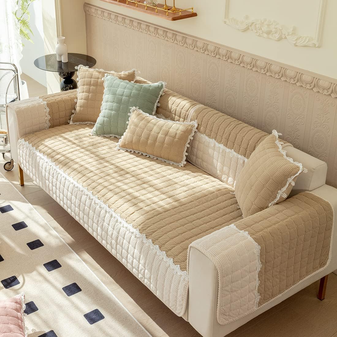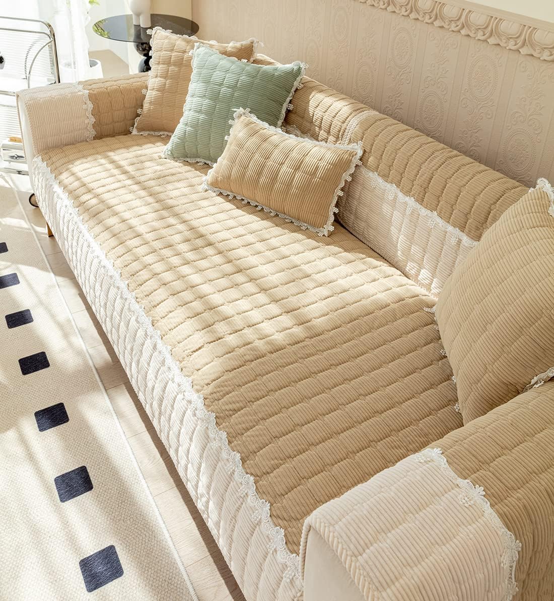 WHAT SIZE SHOULD I ORDER?Please MEASURE your furniture prior to purchasing. Each piece of furniture is unique and we want you to be thrilled with the fit. You can find a detailed size guide below:Sofa, Loveseat & Chair Size:1. 28" Width Series fits for sofa width equal or less than 24". Refer to length, please add extra 4" - 8" longer than actual sofa length.2. 36" Width Series fits for sofa width between 24" to 32". Refer to length, please add extra 4" - 8" longer than actual sofa length.3. 43" Width Series fits for sofa width above 32". Refer to length, please add extra 4" - 8" longer than actual sofa length.Armrest Size Reference:Two sizes for choice: 28" x 28", 36" x 36", please measure and choose suitable size to match.Backrest Size Reference:Backrest width below 32", recommend folding the 28" x 28" rectangular cover to trianglular shape shown in the picture.Backrest width below 32", recommend folding the 36" x 36" rectangular cover to trianglular shape shown in the picture.CAN I USE THIS ON LEATHER FURNITURE?Our slip-resistant protector works great on both fabric and leather furniture. However, because leather furniture does have a smoother surface, you may find that additional adjustments may be necessary.