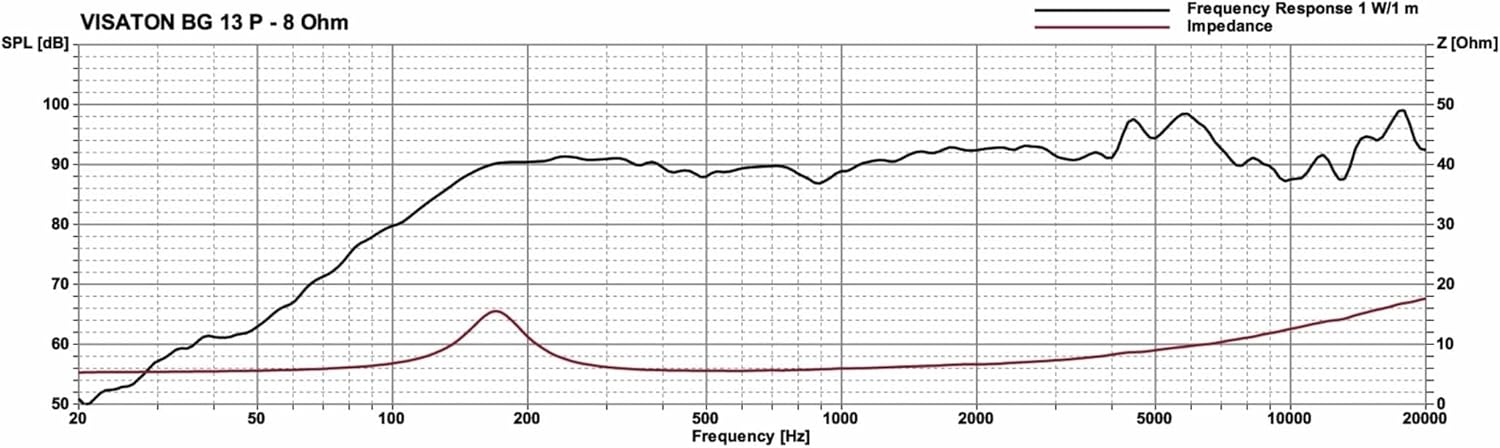 Visaton's BG 13 P 5" full-range speaker has a wide frequency response and excels at voice reproduction. The use of a whizzer cone improves high frequency response.